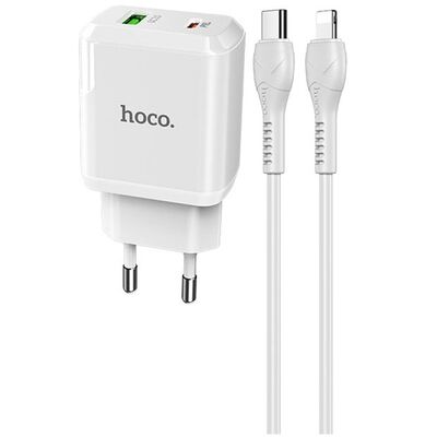 Сетевое зарядное устройство (СЗУ) Hoco C111A QC 3.0 (USB/Type-C PD) + кабель Type-C-Lightning, 3 А / цвет: белый