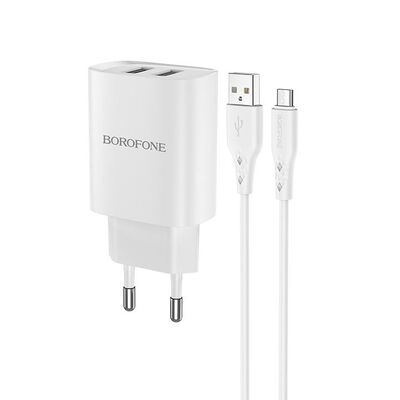 Зарядное сетевое 12W (2 разъёма Usb A + Usb A) + кабель Lightning
