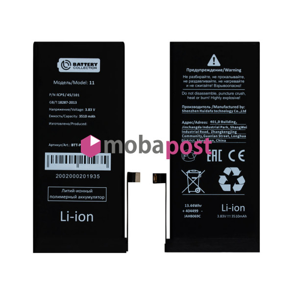 АКБ Apple iPhone 13 Mini (A2481) (2500 mAh) (Аналог) (Battery Collection) (Увеличенная ёмкость)