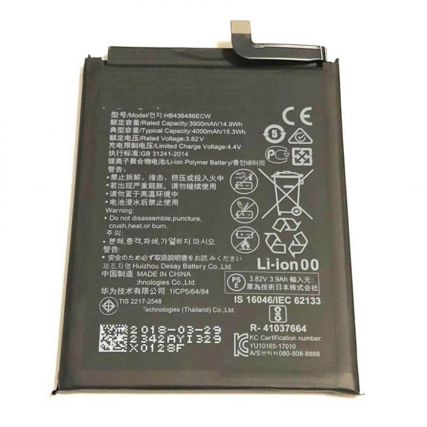 АКБ Huawei Honor 20 Pro (YAL-L41)/Honor View 20 (PCT-L29)/Mate 10 (ALP-L09)/Mate 10 Pro (BLA-L29)/Mate 20 (HMA-L29)/P20 Pro (CLT-L29) HB436486ECW (400
