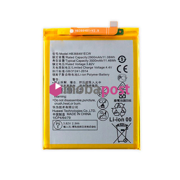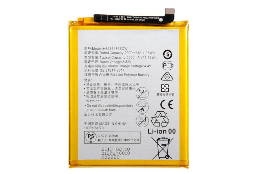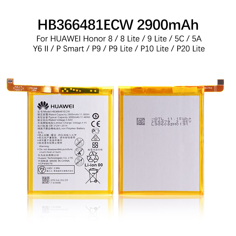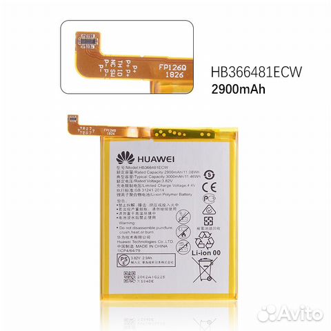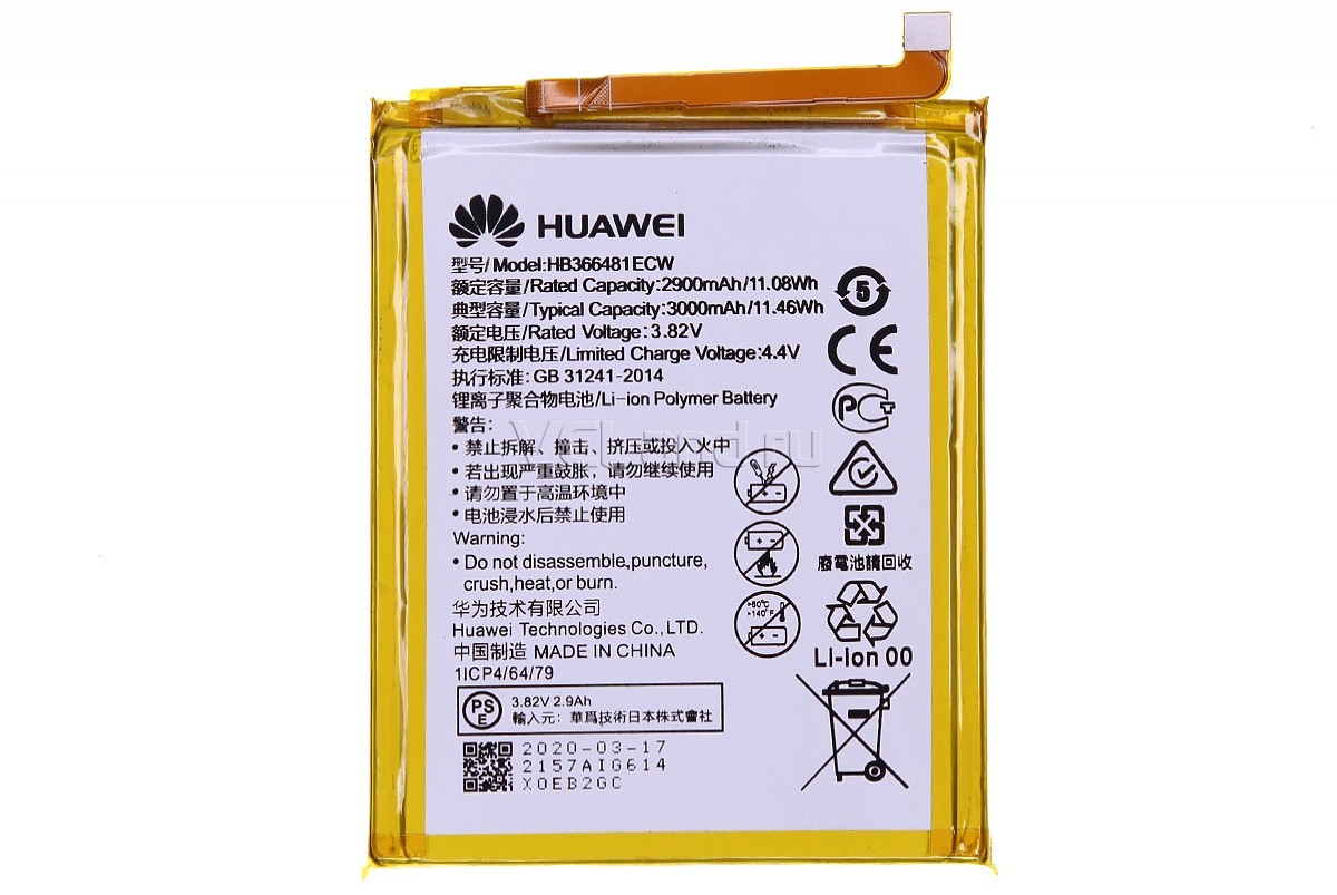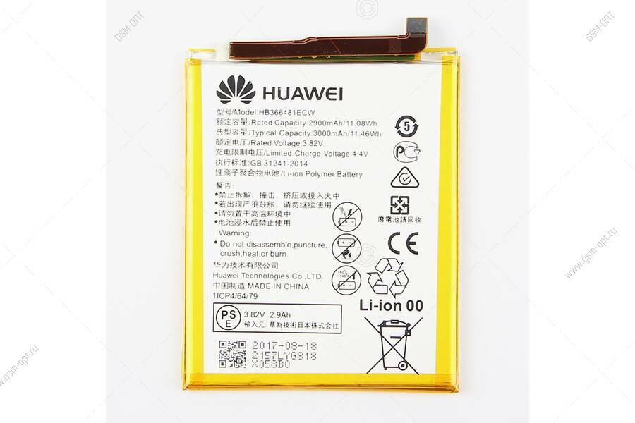 АКБ Huawei Honor 5C (NEM-L51)/Honor 8 (STF-L08)/P10 (VTR-L09)/P10 Lite (WAS-LX1)/P20 Lite (ANE-L21)/P9 (EVA-L09)/P9 Lite (VNS-L21) HB366481ECW (2900 m
