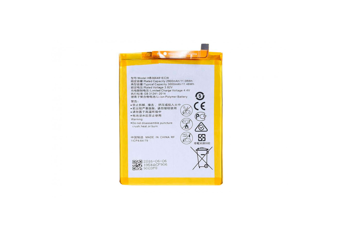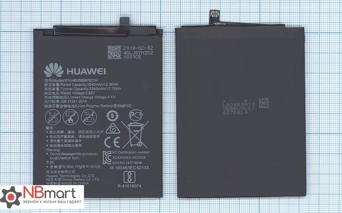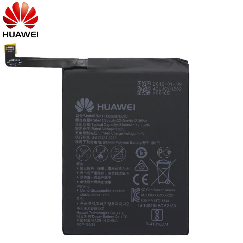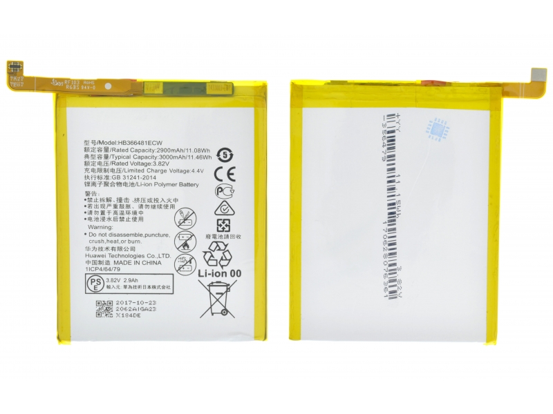 АКБ Huawei Honor 5C (NEM-L51)/Honor 8 (STF-L08)/P10 (VTR-L09)/P10 Lite (WAS-LX1)/P20 Lite (ANE-L21)/P9 (EVA-L09)/P9 Lite (VNS-L21) HB366481ECW (2900 m