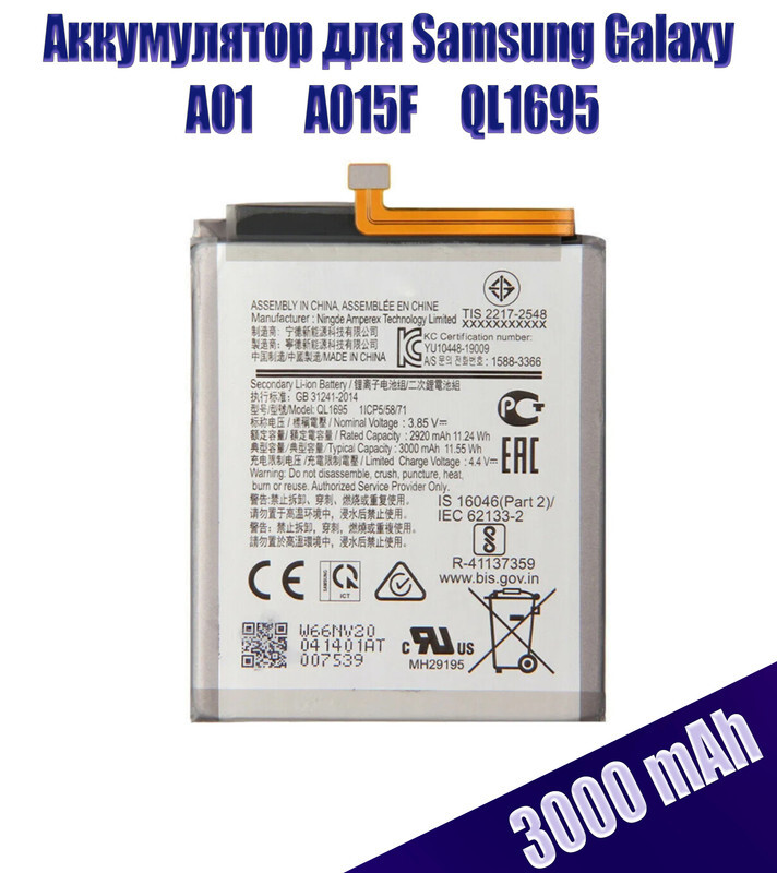 АКБ Samsung Galaxy A01 (A015F) QL1695 (3000 mAh) (Аналог) (Battery Collection)