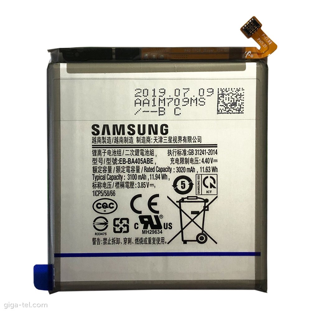 АКБ Samsung Galaxy A40 (A405F) EB-BA405ABE (3100 mAh) (Оригинал)