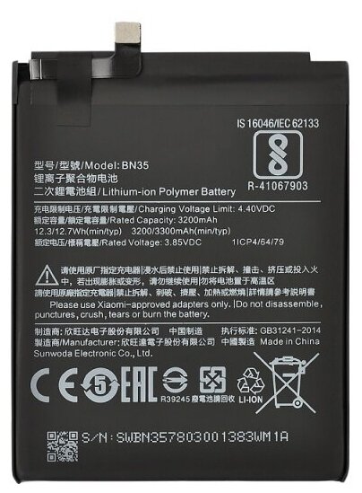 АКБ Xiaomi Redmi 5 (MDG1) BN35 (3200 mAh) (Аналог)