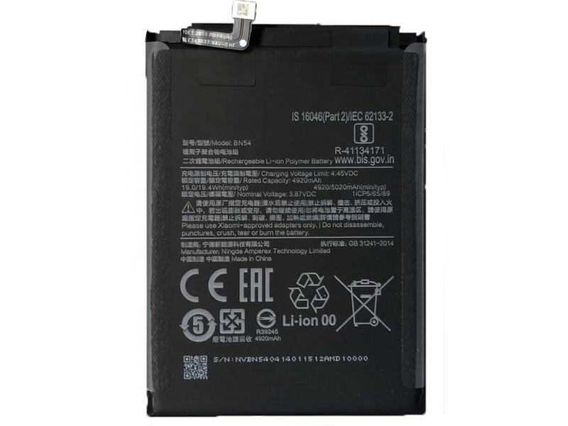 АКБ Xiaomi Redmi 9 (M2004J19G)/Redmi Note 9 (M2003J15SC) BN54 (5000 mAh)