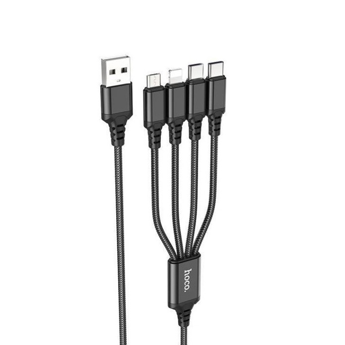 Кабель 4 в 1 USB - Type-C + Type-C + Lightning + Micro USB (1 метр, 3 Ампера, ткань) - Apple