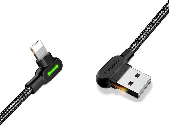 Кабель USB - Lightning (1,2 метра, 3 Ампера, ткань) - Угловой