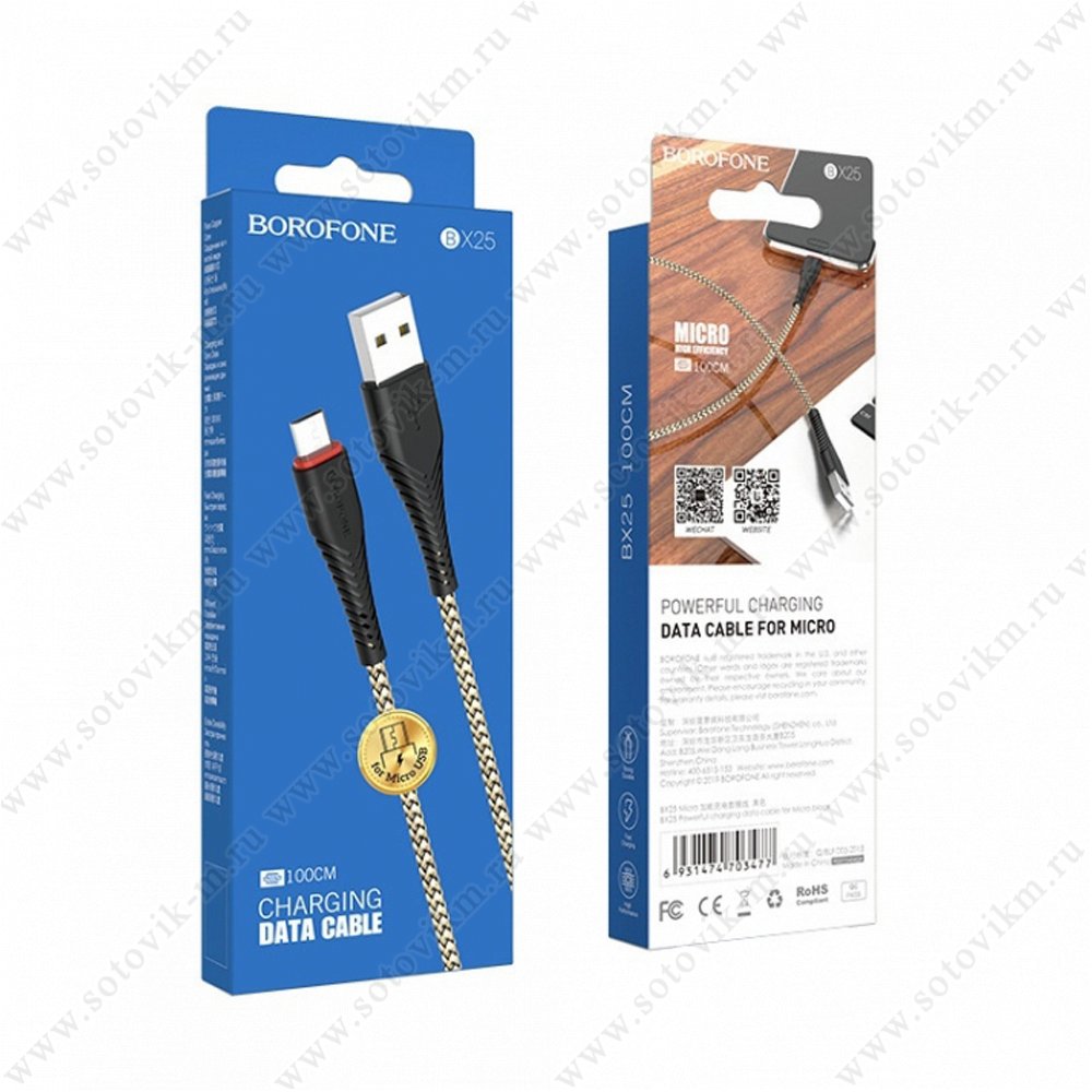 Кабель USB - Micro USB (1 метр, 3 Ампера, силикон)