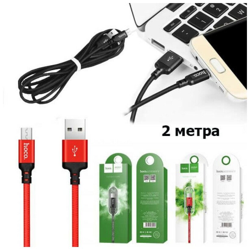 Кабель USB - Micro USB (2 метра, 3 Ампера, ткань)