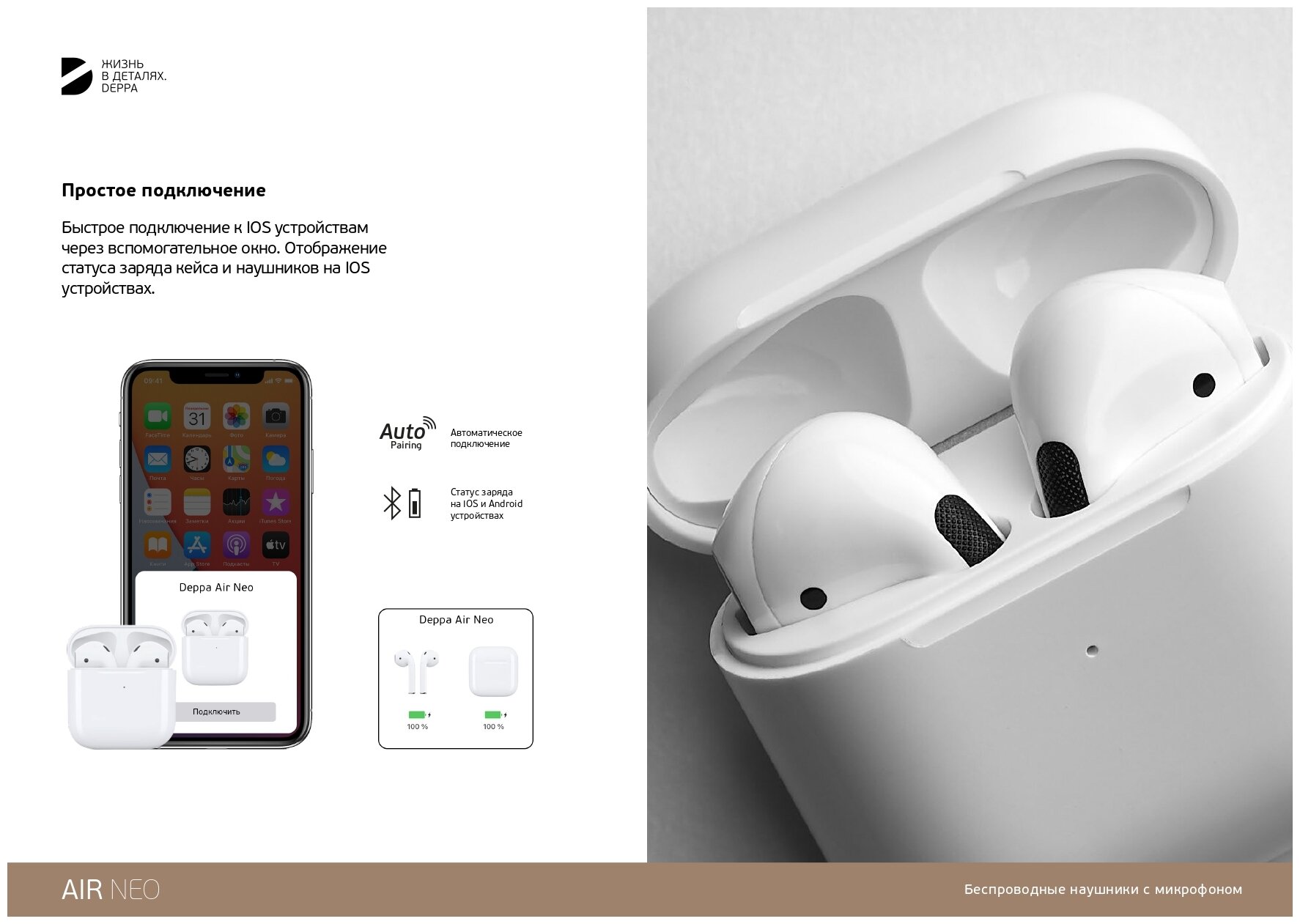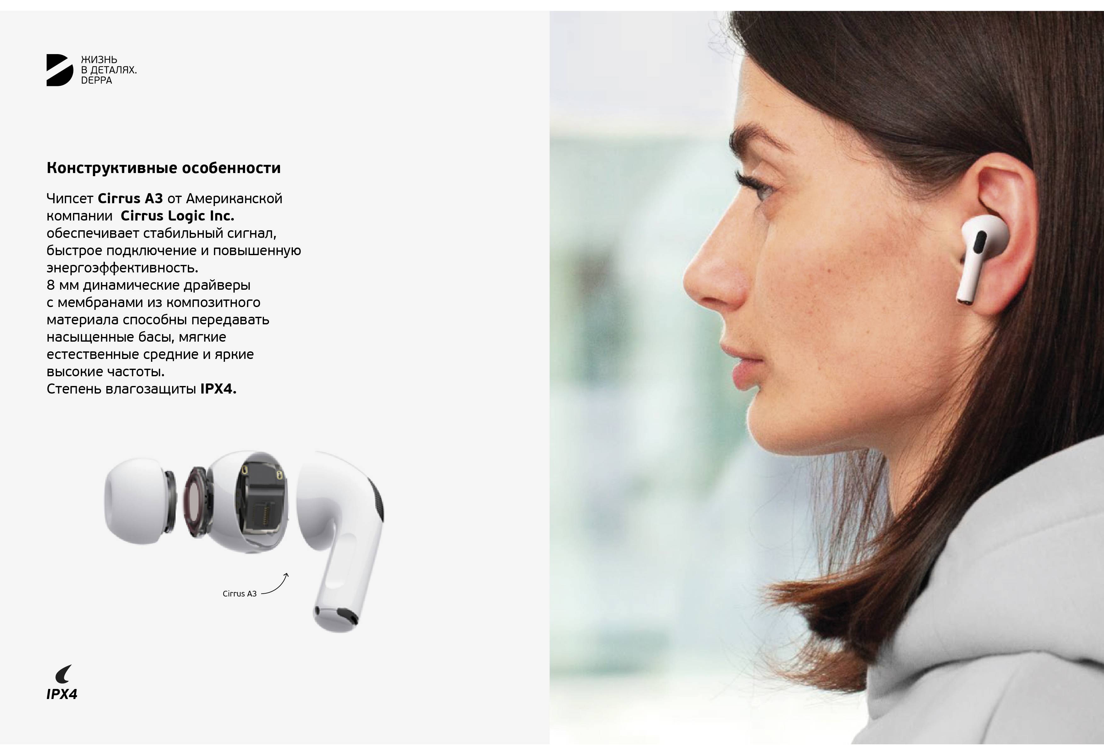 Наушники беспроводные вкладыши (микрофон) Deppa Air Crystal - Белые