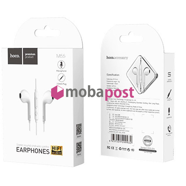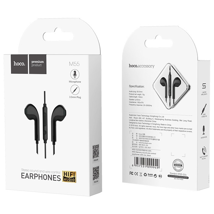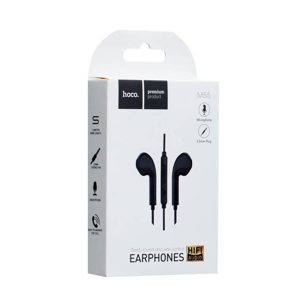 Наушники проводные вкладыши 3.5 Jack (микрофон) Hoco M55 - Чёрные