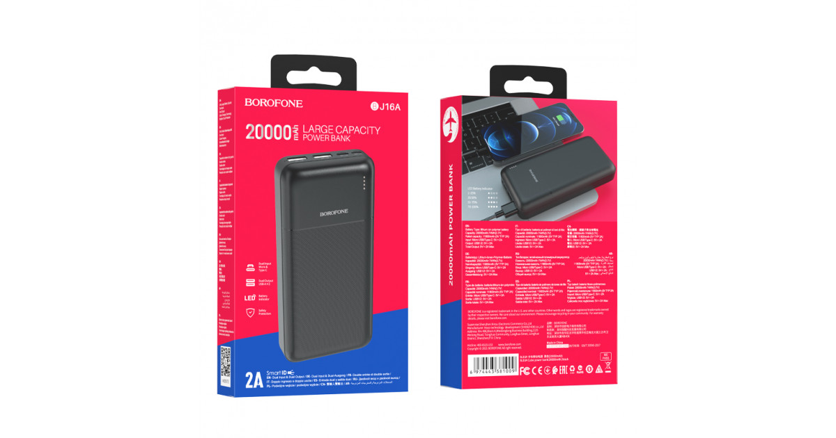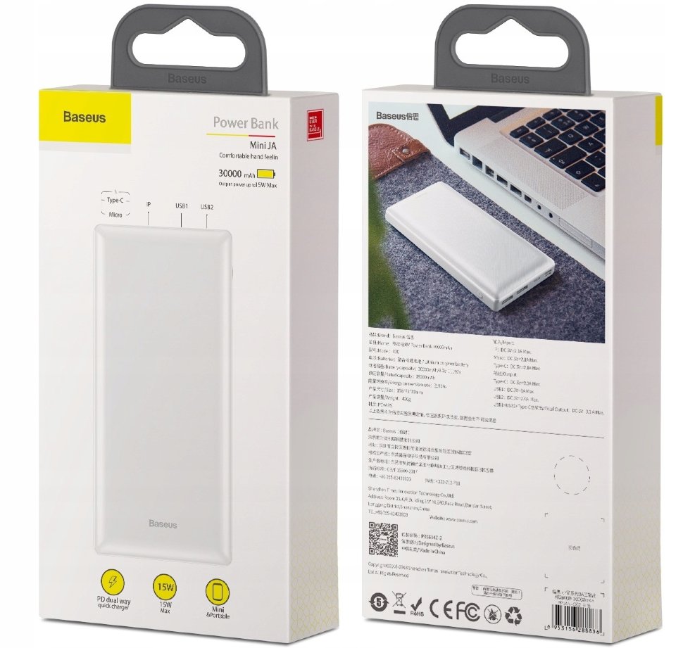 Повербанк 30000 mAh Usb A + Usb A + Usb C + Micro Usb (22W, QC 3.0)
