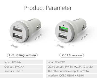 Зарядное автомобильное Usb A + Usb A (18W, QC 3.0)