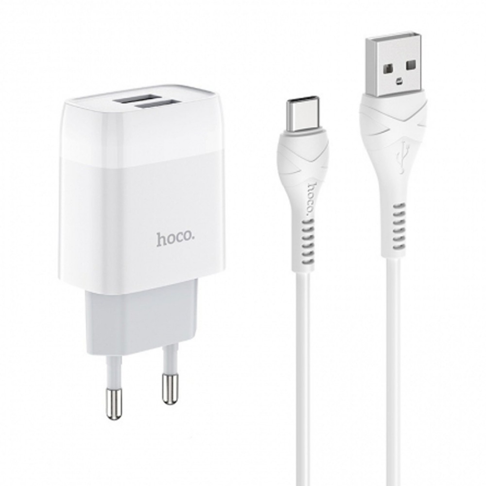 Зарядное сетевое Usb A + Usb A (10W) + кабель Type-C в комплекте