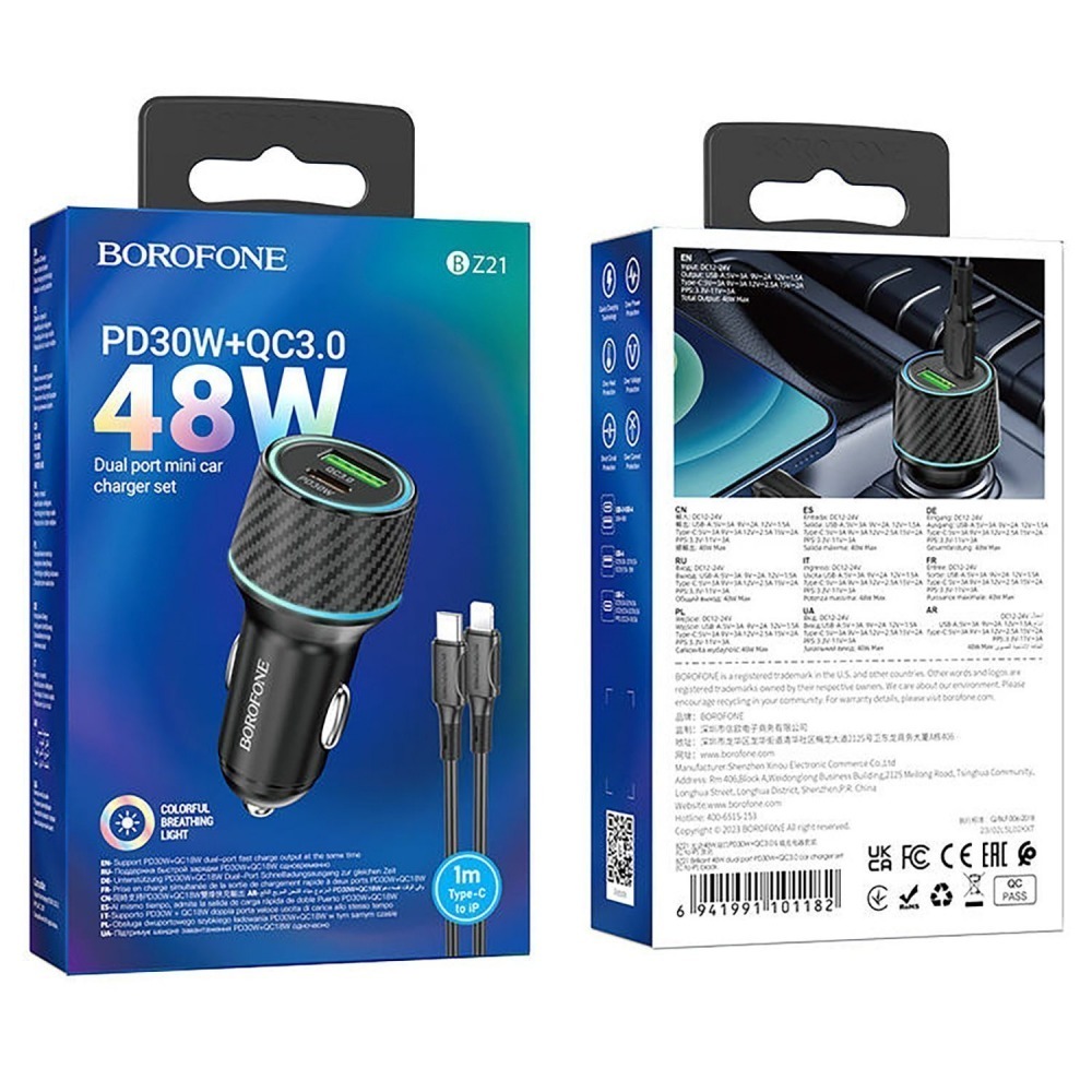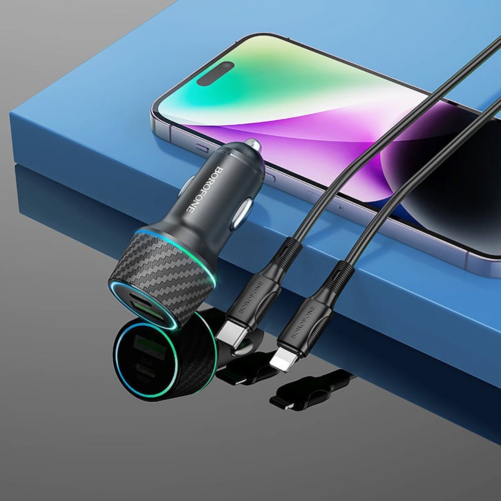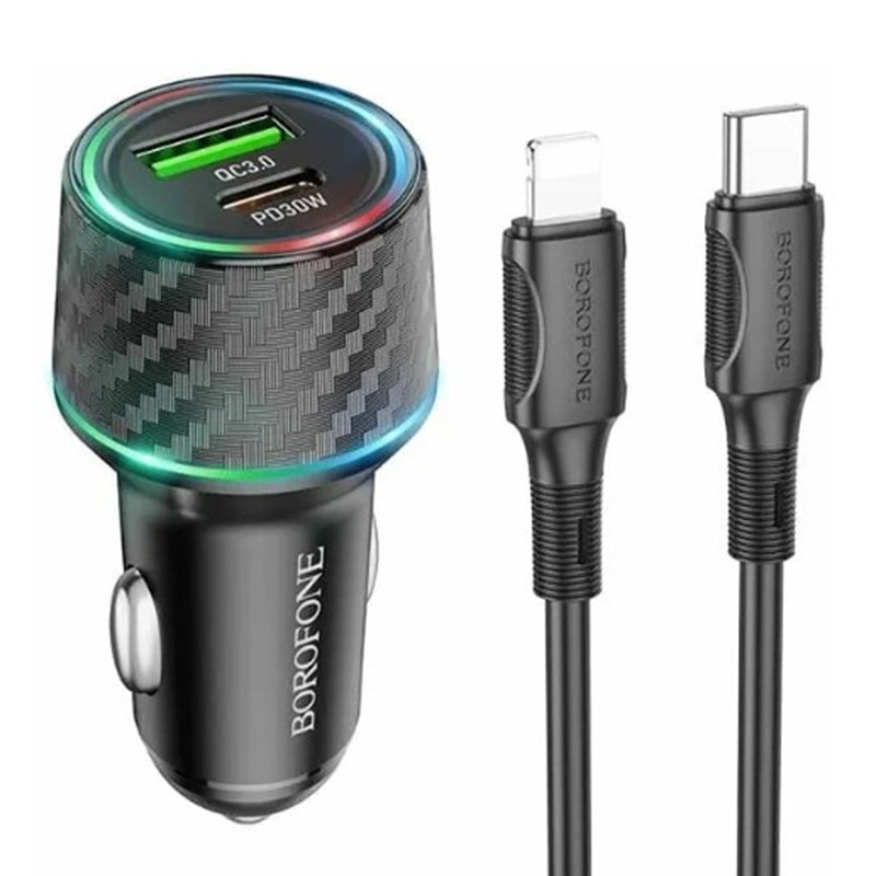 Зарядное автомобильное 48W (2 разъёма Usb A + Usb C) QC 3.0, PD 2.0 + кабель Type-C - Lightning