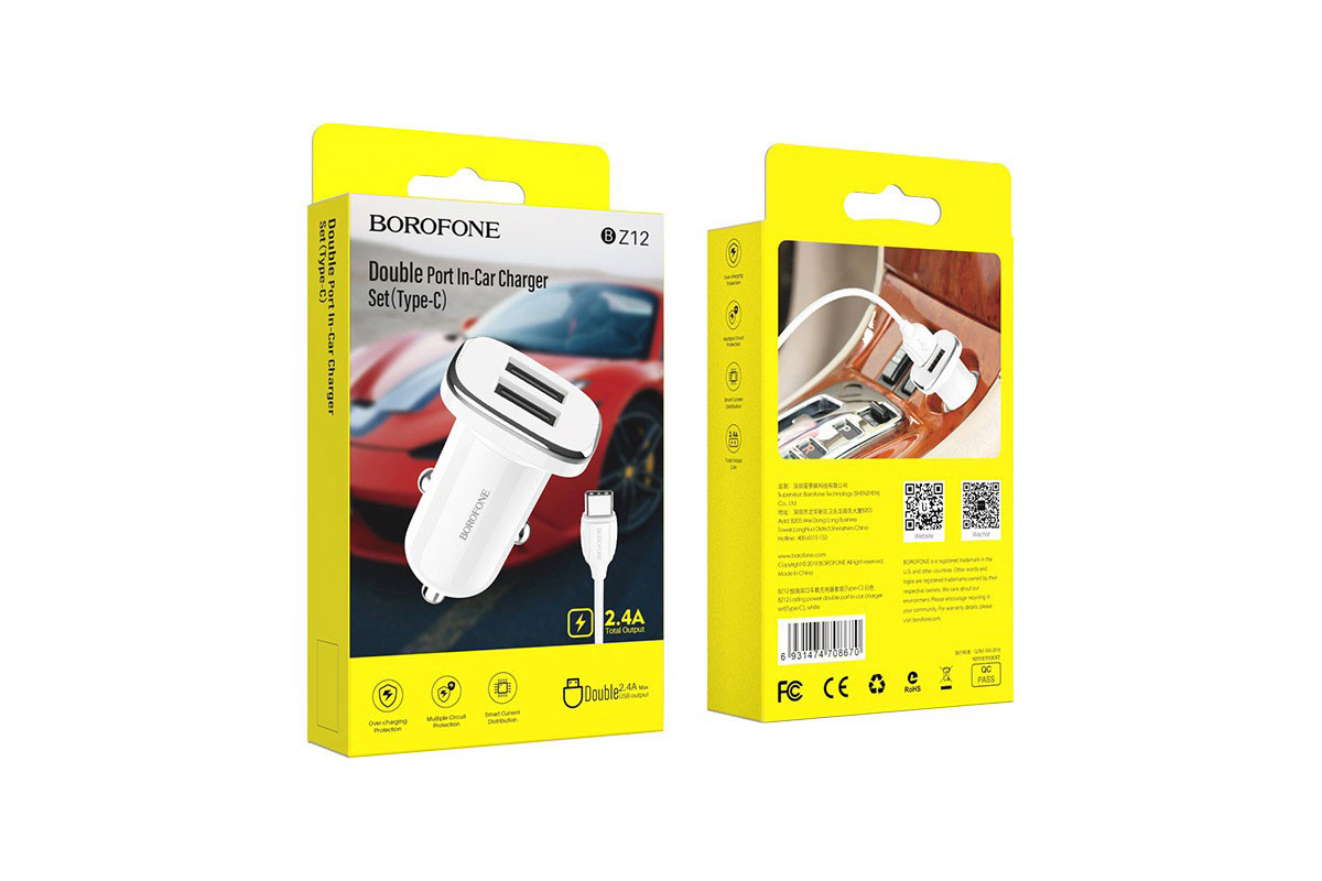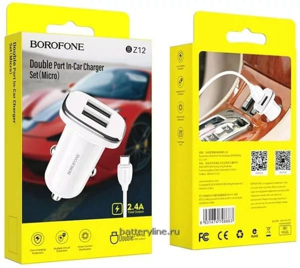 Зарядное автомобильное Usb A + Usb A (12W)