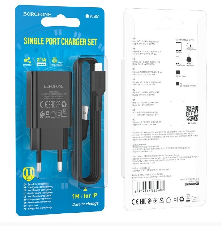 Зарядное сетевое 10W (1 разъём Usb A) + кабель Lightning