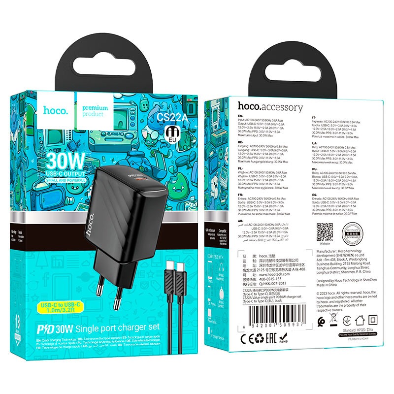 Зарядное сетевое 30W (1 разъём Usb C, PD 2.0) + кабель Type-C - Type-C