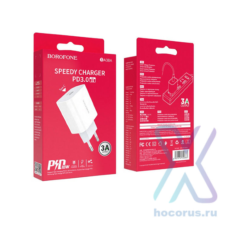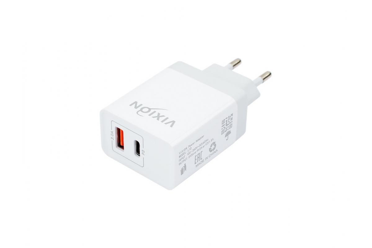 Зарядное сетевое Usb A + Usb C (18W, QC 3.0)