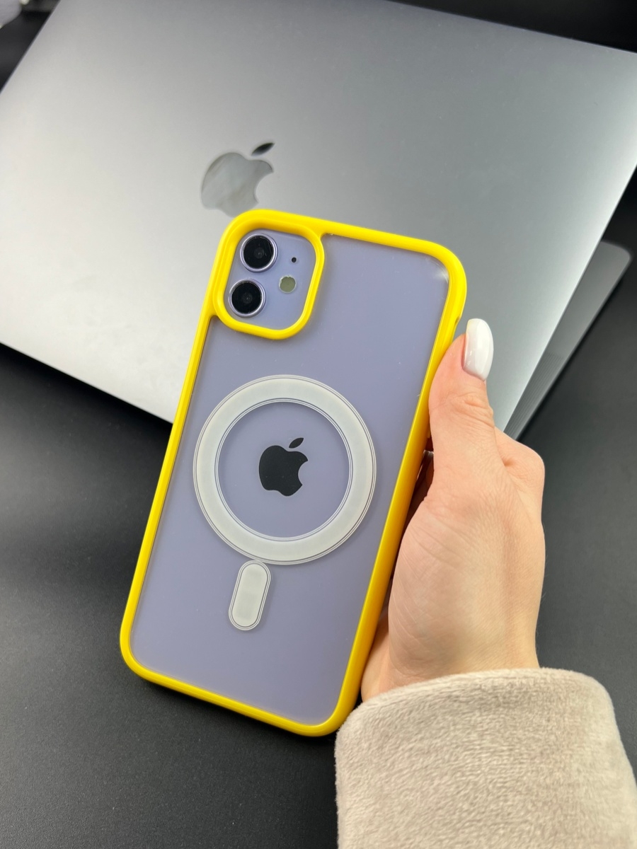 Чехол Apple iPhone 11 (A2221) экокожа - Жёлтый (MagSafe)