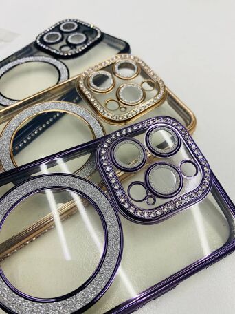Чехол Apple iPhone 12 Pro (A2407) силиконовый - Фиолетовый (Защита камеры, MagSafe, Блестки)