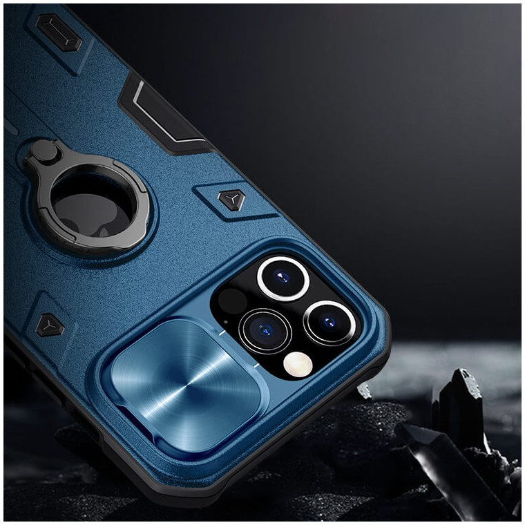 Чехол Apple iPhone 12 Pro Max (A2342) противоударный - Синий (Рельеф Карбон, Защита камеры)