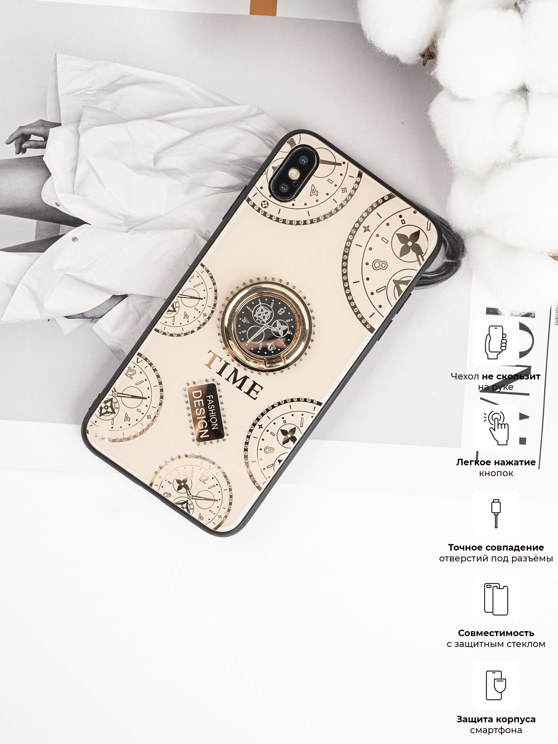 Чехол Apple iPhone X (A1865)/iPhone XS (A2097) силиконовый - Прозрачный (Рисунок, Защита камеры)