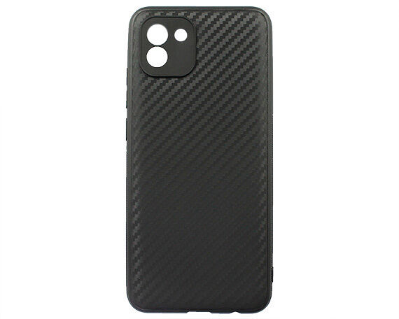 Чехол Samsung Galaxy A03 (A035F) силиконовый - Чёрный (Рельеф Карбон, Защита камеры)