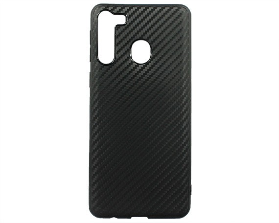 Чехол Samsung Galaxy A21 (SM-A215) силиконовый - Чёрный (Рельеф Карбон, Защита камеры)