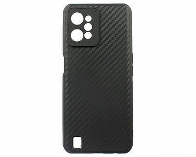 Чехол Realme C21 (RMX3201) силиконовый - Чёрный (Рельеф Карбон, Защита камеры)