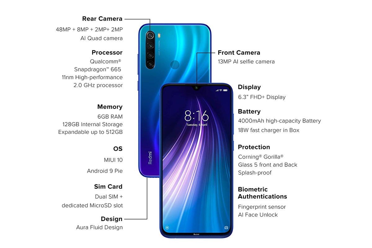 Контейнер SIM/MMC Xiaomi Redmi Note 8 (2019) (M1908C3JG)/Redmi Note 8 (2021) (M1908C3JGG) - Синий