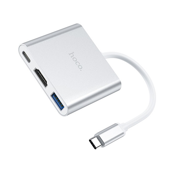 Адаптер Hoco HB14 (Type-C -USB3.0+HDMI+PD), серебристый