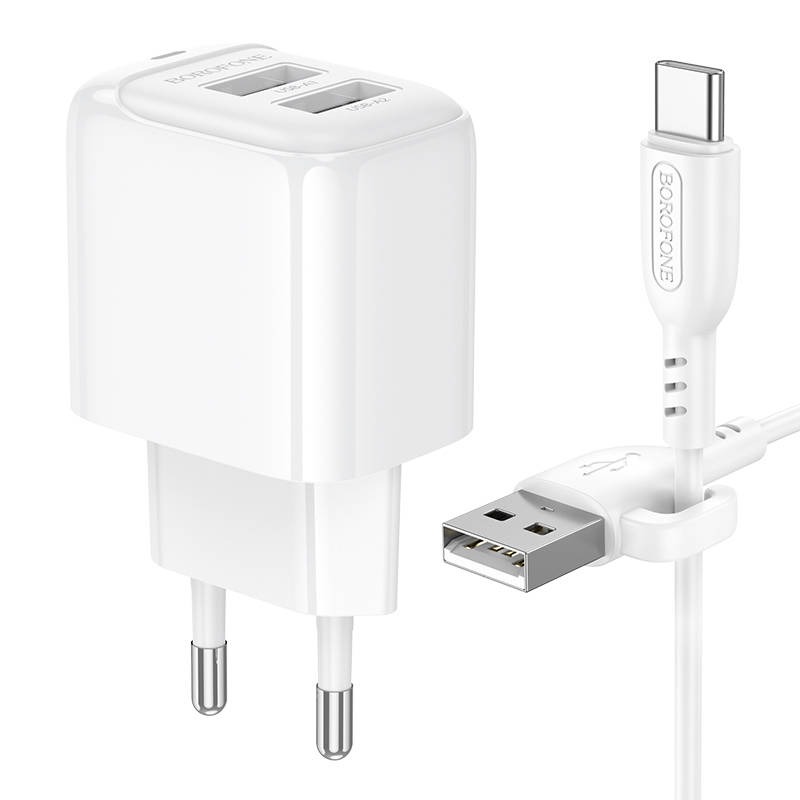 Адаптер Сетевой с кабелем Borofone BAS41A Potential 2USB 2A/10W (USB/Type-C) (white) (235127)