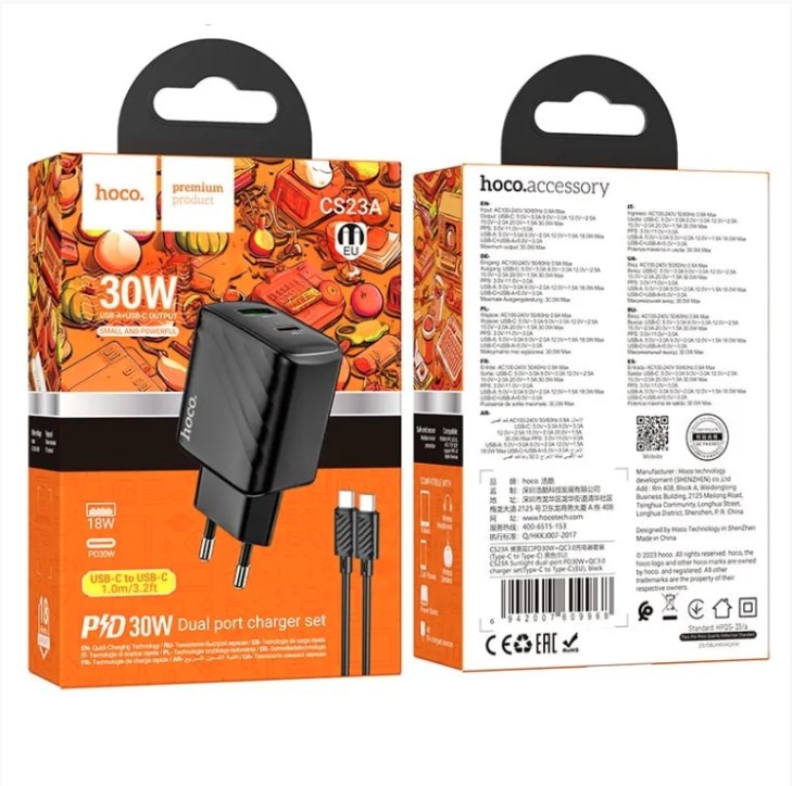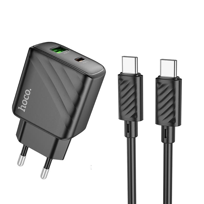Адаптер Сетевой с кабелем Hoco CS23A Sunlight PD+QC USB/Type-C 30W (Type-C/Type-C) (black) (222785)