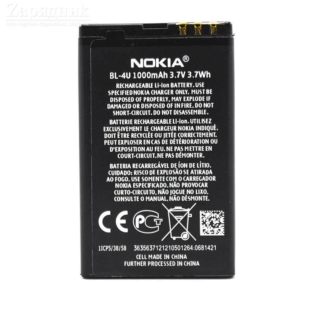 АКБ Nokia 206/3120 Classic/5250/5330 XpressMusic/8800 Arte BL-4U (1000 mAh) (Аналог) (Battery Collection)