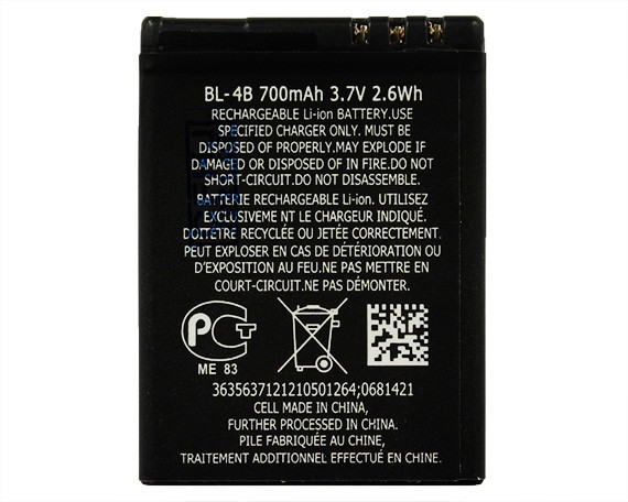 АКБ Nokia 2630/2760/5000/5500/6111/7500/N76 BL-4B (700 mAh) (Аналог)