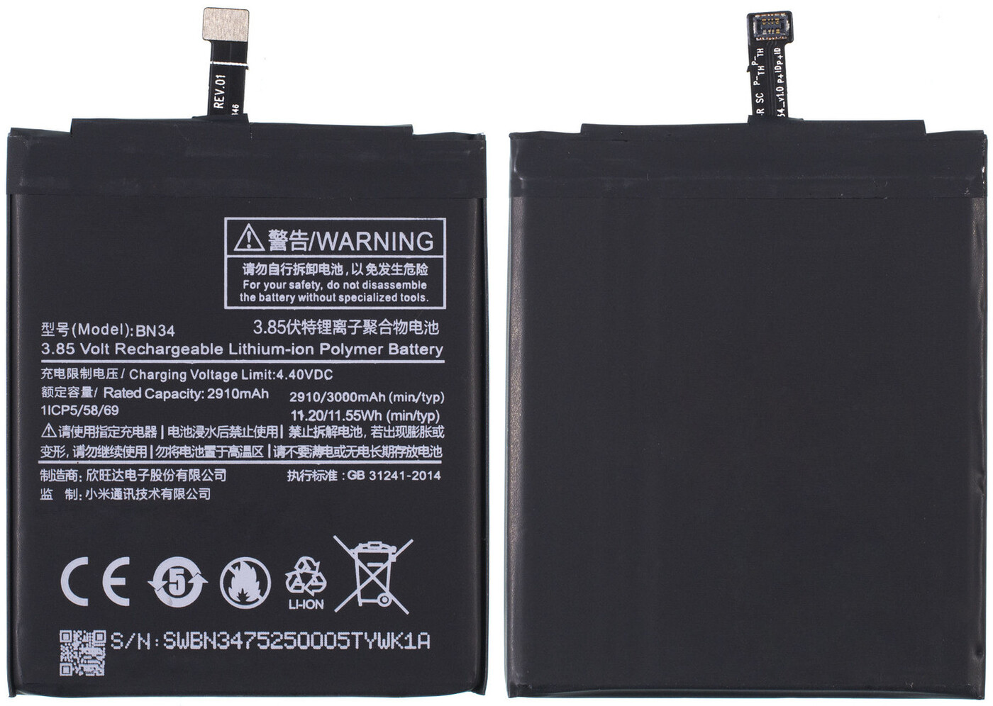 АКБ Xiaomi Mi 5X/Mi A1 (MDG2) BN31 (3000 mAh)