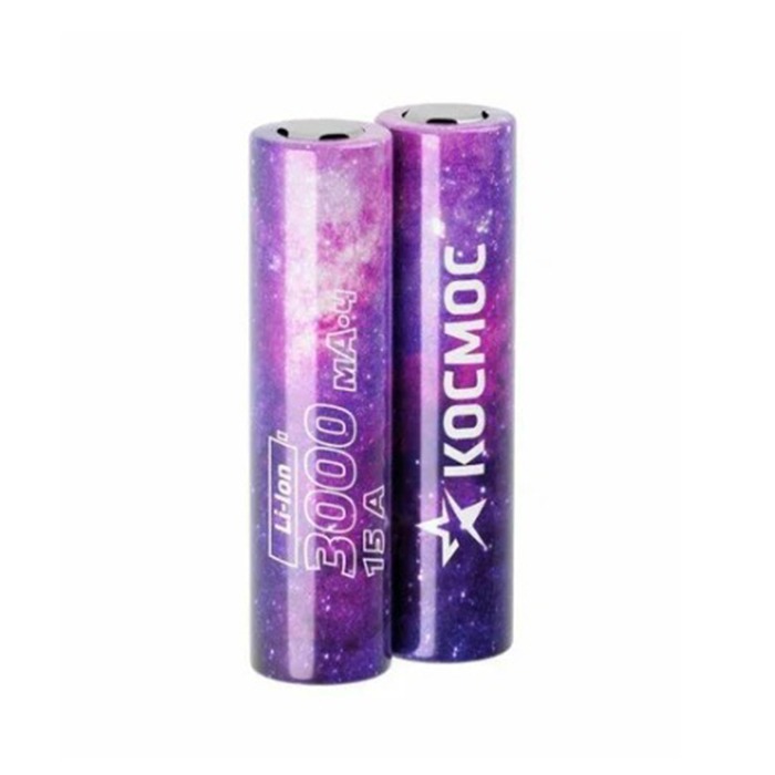 Аккумулятор КОСМОС 18650 Li-ion 3000 mAh без защиты, 2 шт шринк высокотоковый, низкая шляпка (2/200)
