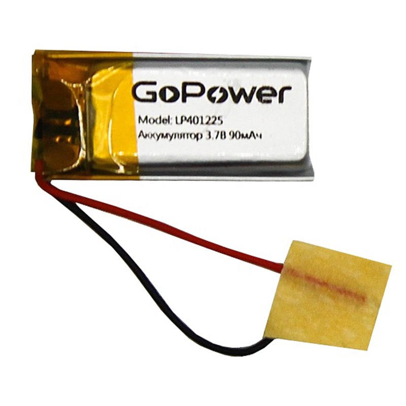 Аккумулятор Li-Pol LP401225 PK1 3.7V 90mAh (толщ.4,0мм, шир.12мм, дл.25мм) "GoPower"