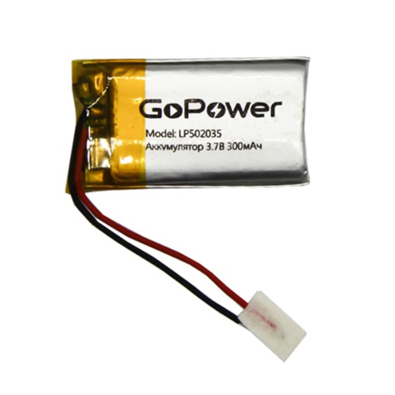 Аккумулятор Li-Pol LP502035 PK1 3.7V 300mAh (толщ.5,0мм, шир.20мм, дл.35мм) "GoPower"