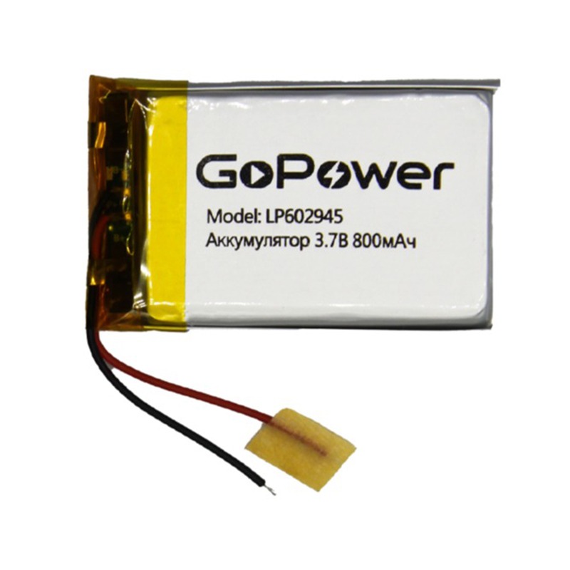 Аккумулятор Li-Pol LP602945 PK1 3.7V 800mAh (толщ.6,0мм, шир.29мм, дл.45мм) "GoPower"
