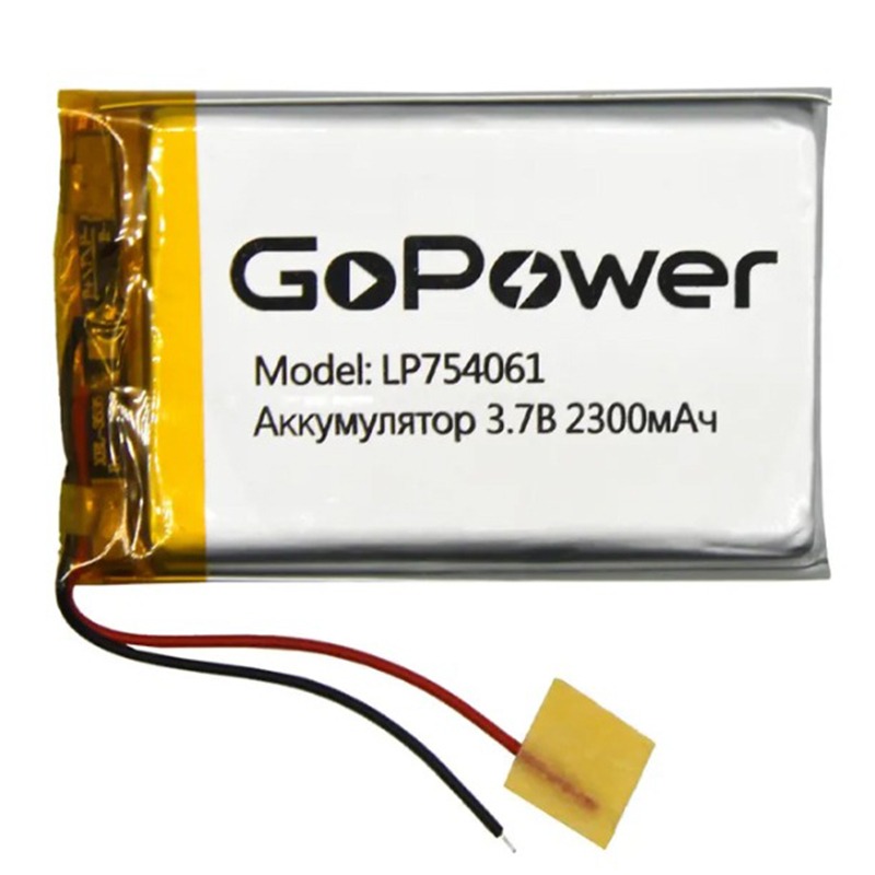 Аккумулятор Li-Pol LP754061 PK1 3.7V 2300mAh (толщ.7,5мм, шир.40мм, дл.61мм) "GoPower"