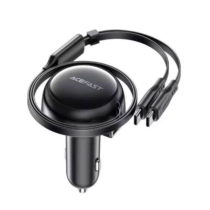 Автомобильное зарядное устройство USB/Type-C Acefast B13 (53W, QC3.0, PD, 1USB, 2 встроенных кабеля Type-C) Черный