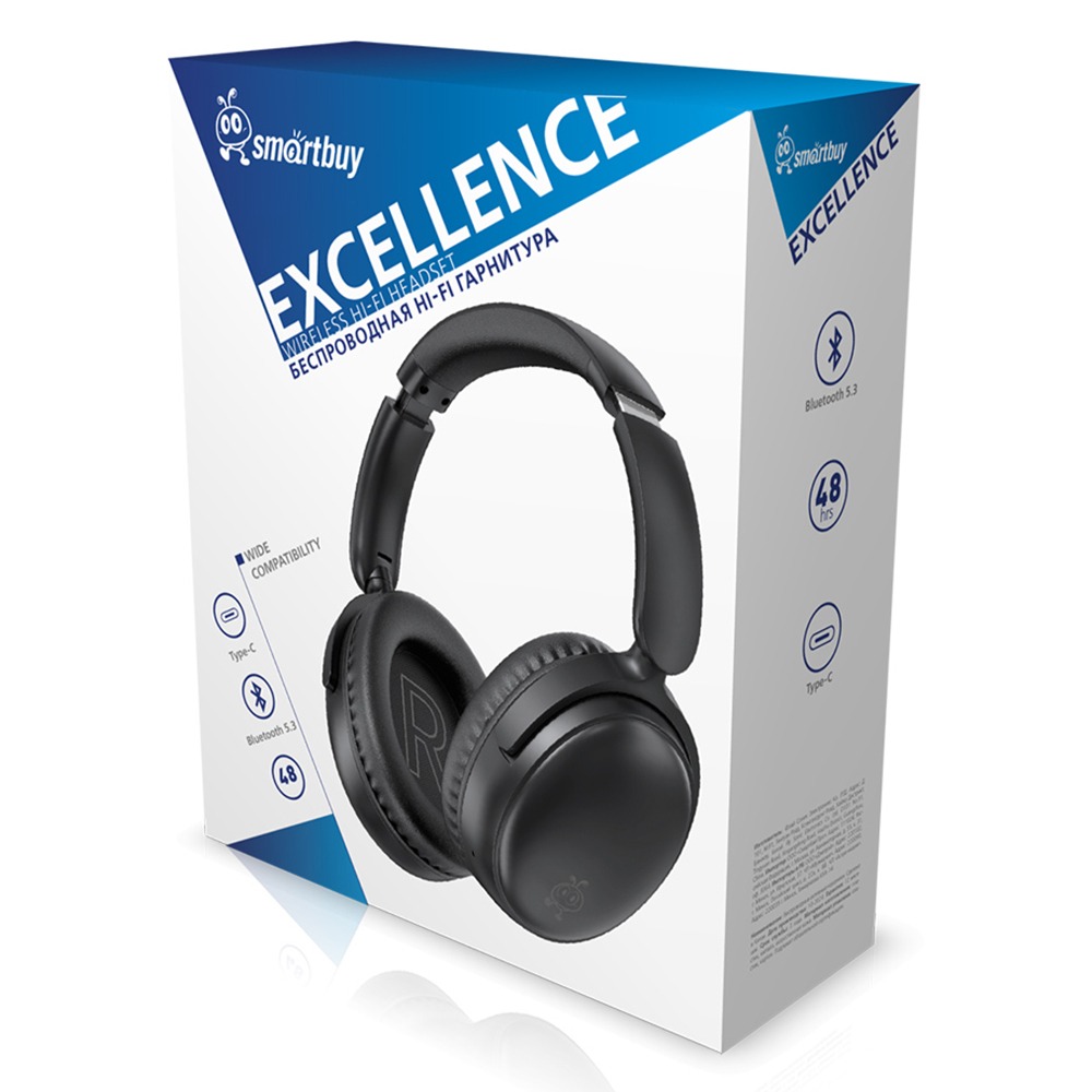 Беспроводная Bluetooth-гарнитура Smartbuy EXCELLENCE, складная конструкция, Type-C, черная (SBH920)