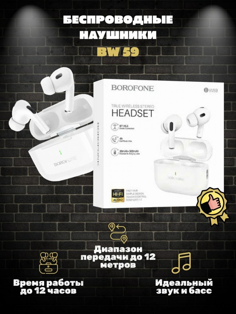Беспроводные Bluetooth-наушники Borofone BW59 (white) (222393)