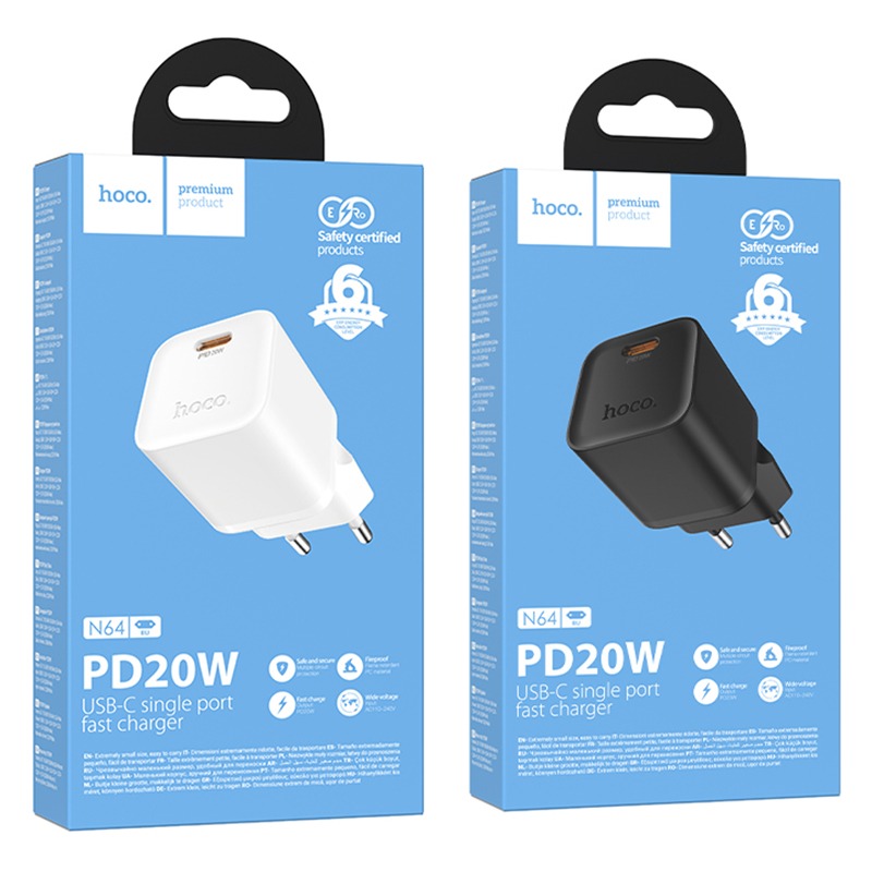 Блок питания сетевой 1 Type-C HOCO N64, PD20Вт, цвет: белый (1/13/130)