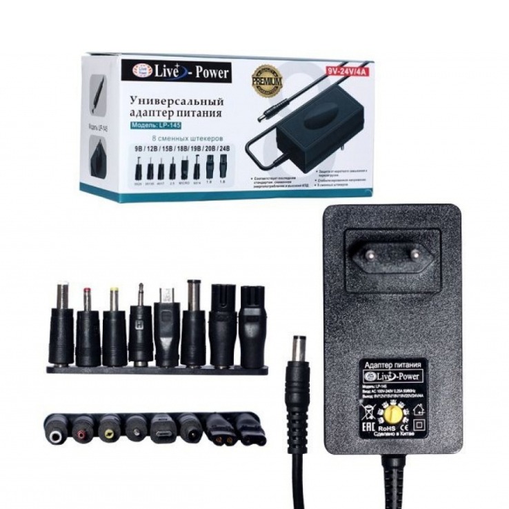 Блок питания универсальный LP145 9V-24V/4A + 8 насадок