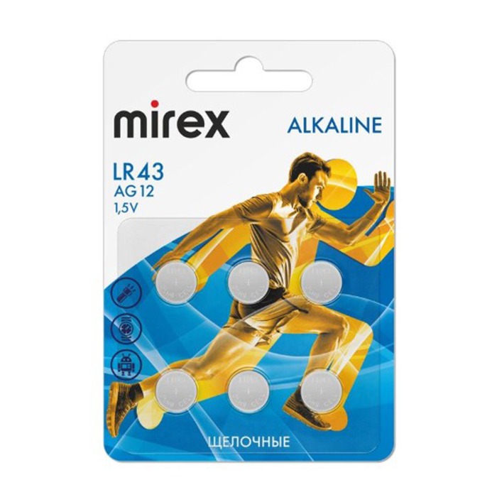 Элемент питания Mirex AG12 / LR43 1,5V 6 шт (6/216/648), ecopack
