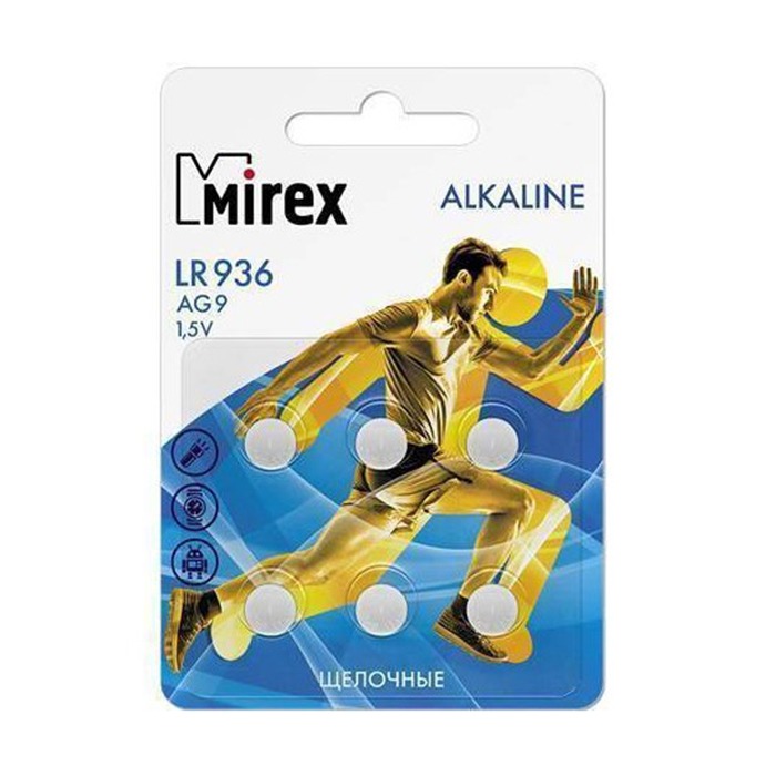 Элемент питания Mirex AG9 / LR936 1,5V 6 шт (6/216/648), ecopack